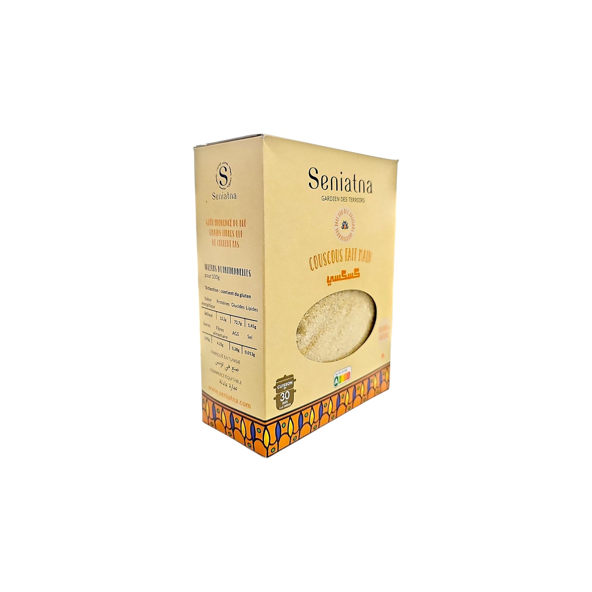 Hergestellt aus feiner Hartweizengrieß-Semoule, die von erfahrenen Frauen in mühevoller Handarbeit verarbeitet wird. Die Körner werden traditionell von Hand gerollt, bis sie ihre perfekte, leichte und lockere Konsistenz erreichen – ein Couscous, der nicht klebt und beim Garen wunderbar locker bleibt.