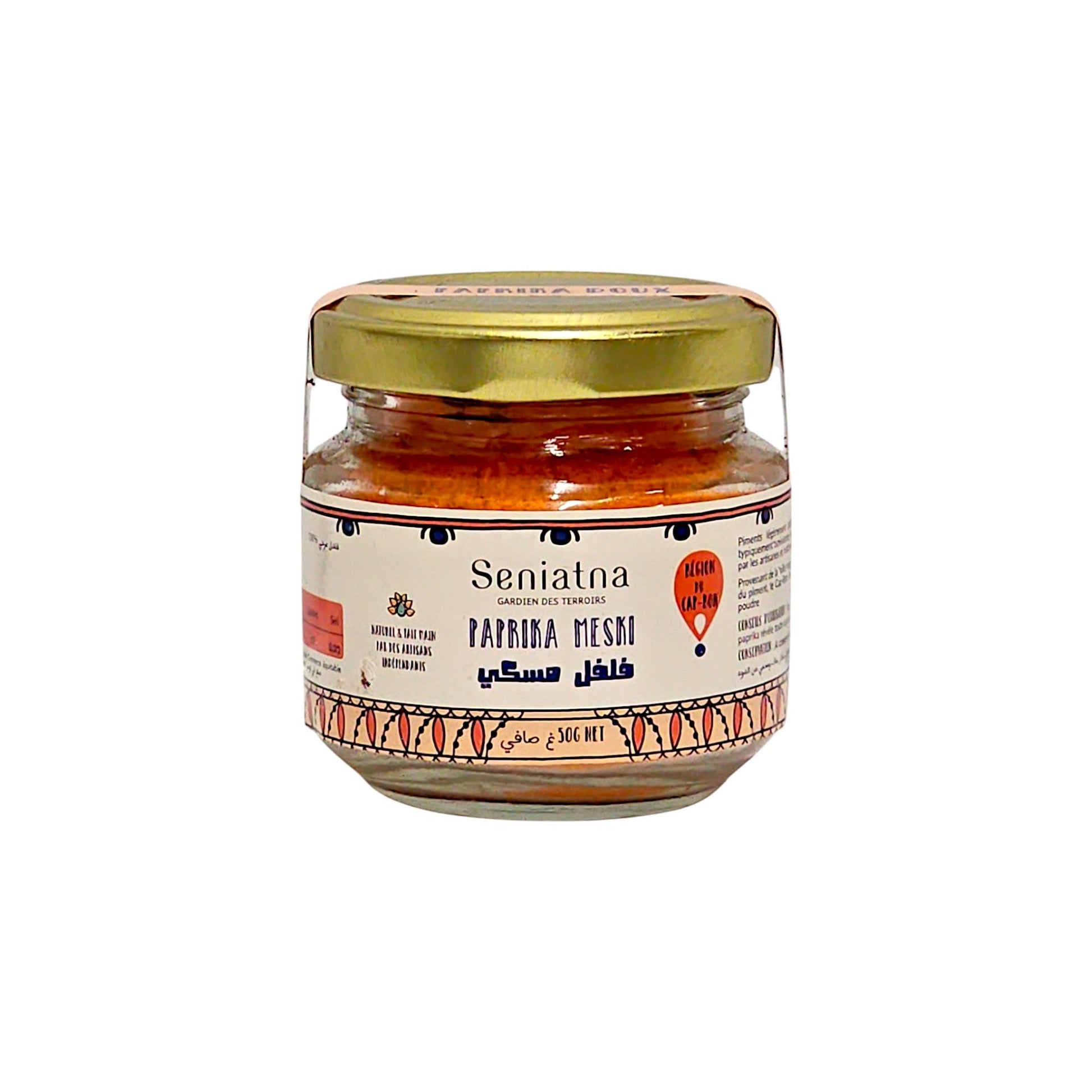 Das Paprikapulver Meski aus Tunesien wird von Frauen in der Region Cap Bon nach überlieferten Methoden gefertigt, um die Authentizität und Qualität dieser edlen Gewürzspezialität zu bewahren. Jede Prise bringt eine tiefe, warme Würze in deine Gerichte – ein echtes Stück tunesischer Kochtradition!